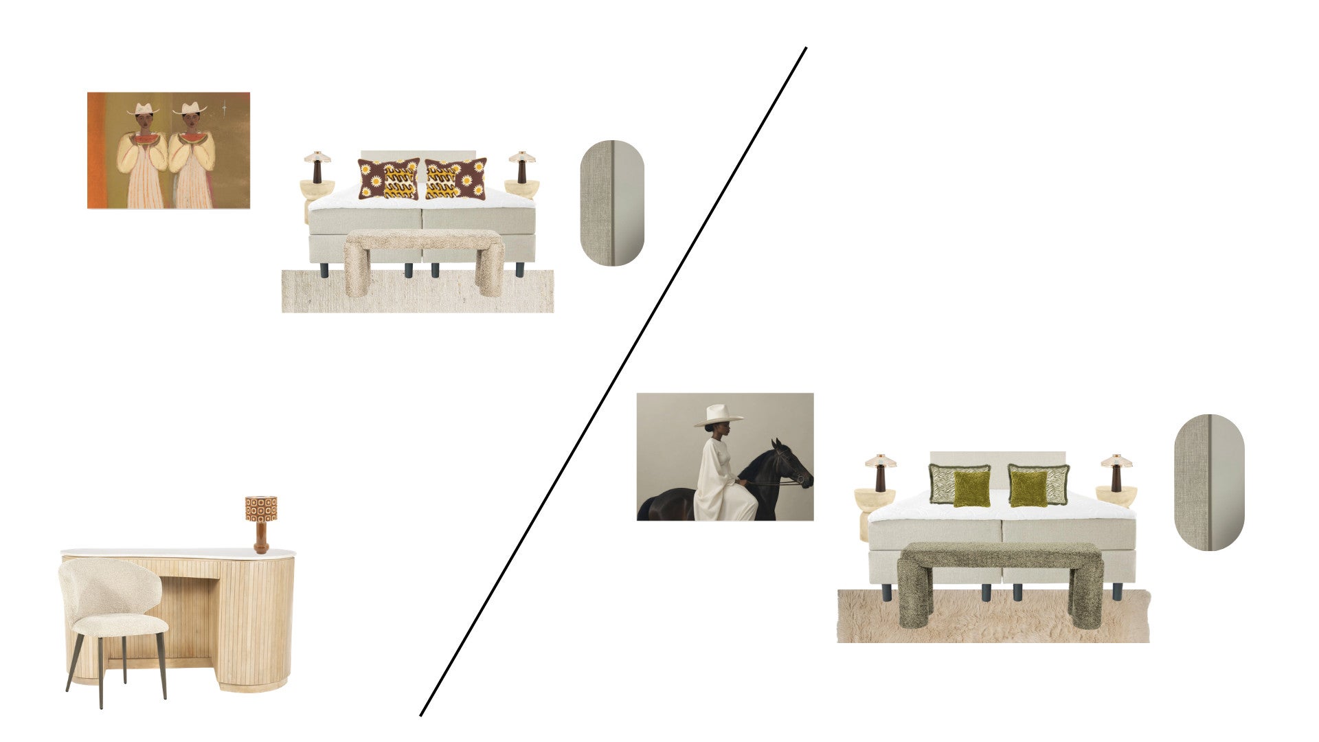 The bedrooms are designed as calm and luxurious suites, furnished with comfortable beds and wardrobes. Thanks to the smart layout, there is ample storage space while maintaining an open and uncluttered feel. A dedicated workspace also makes the apartment perfectly suited for working from home.