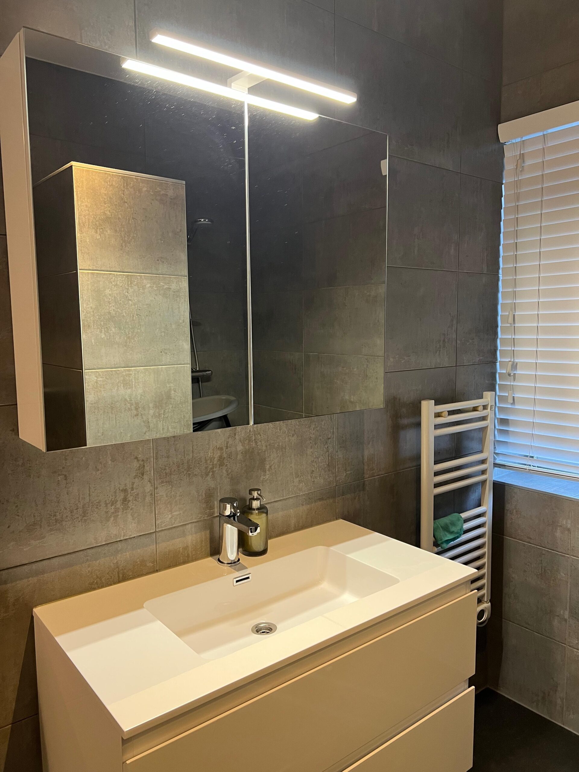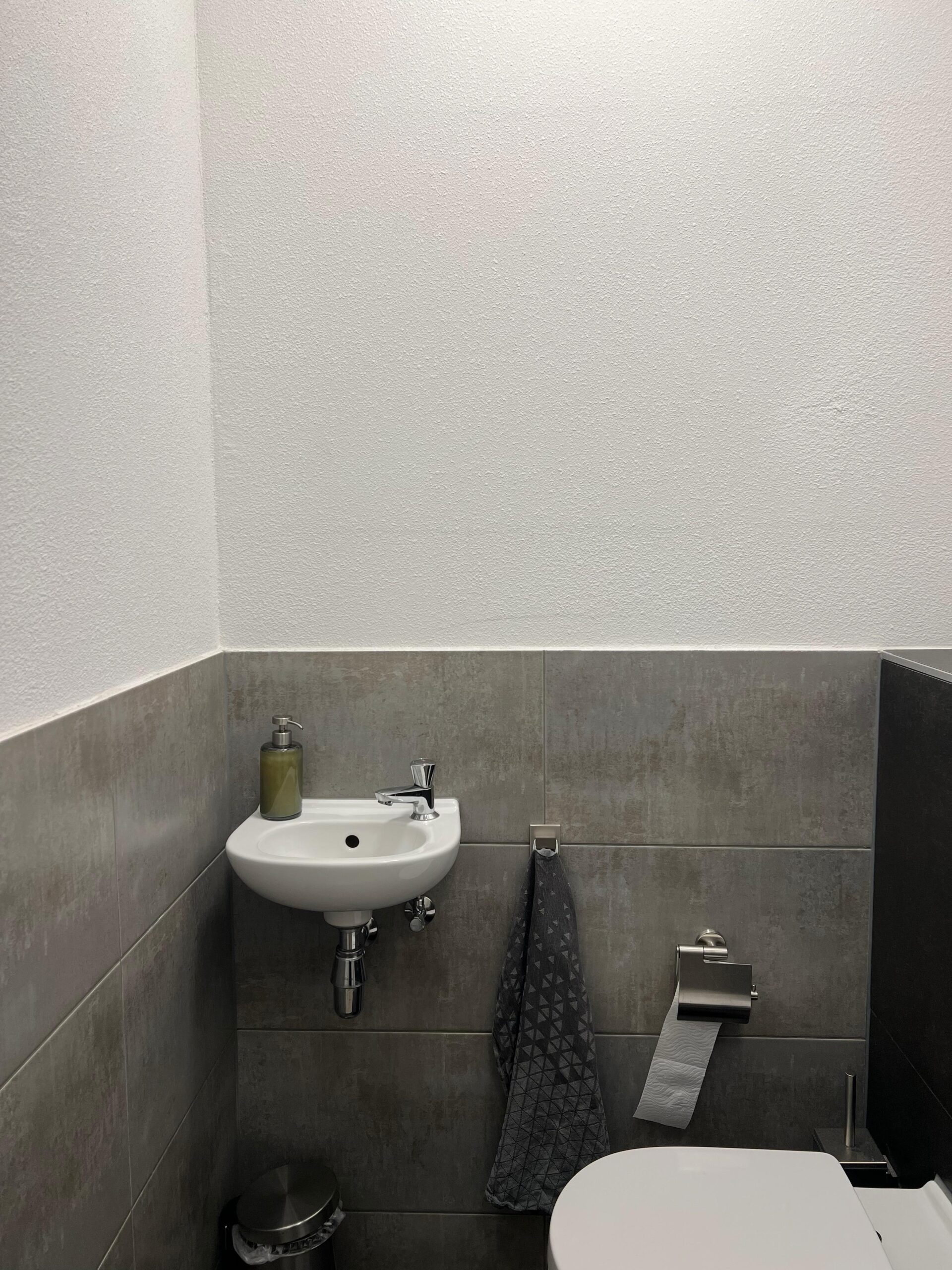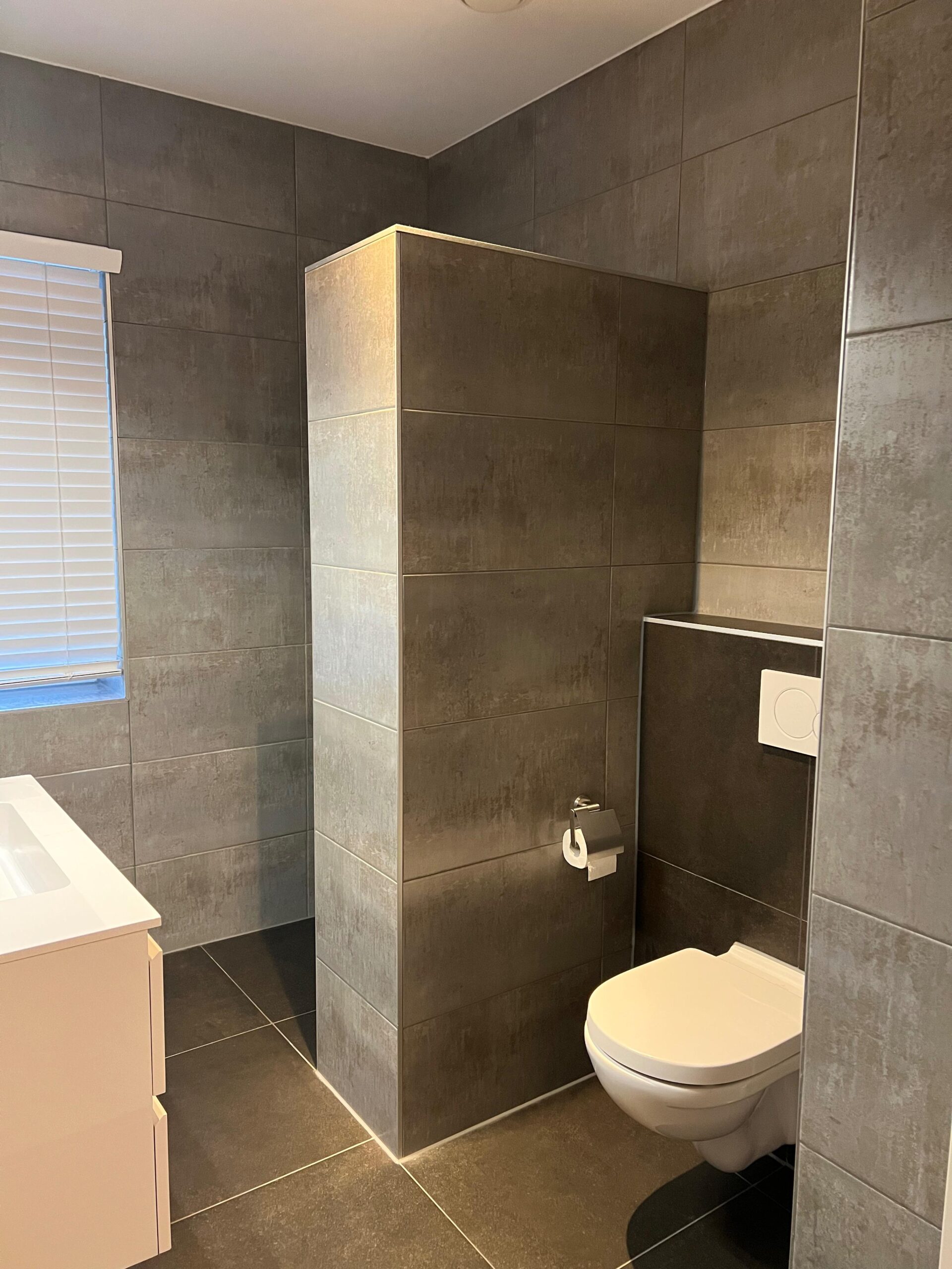 The house also has a modern bathroom with a washbasin, toilet and walk-in shower. There is also a separate toilet on the ground floor.