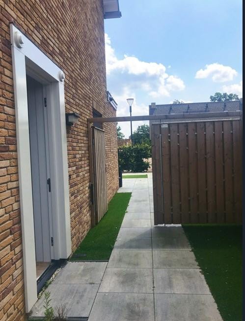 De achtertuin is gunstig gelegen en biedt voldoende ruimte om te genieten van rust en privacy. Dankzij de hoekligging profiteert de woning van extra lichtinval en een ruimtelijk gevoel.
